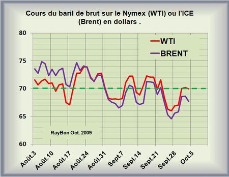 Les cours du brut WTI à New York, sur un Marché tendanciellement et logiquement baissier depuis le début du mois d’Août, ont gagné 3 dollars par baril cette semaine pour terminer aux alentours des 70 dollars d’équilibre du moment (FIG.). Le Brent plus éloigné du temple de la spéculation qu’est le Nymex, a suivi en renâclant et ne s’est valorisé pour sa part que de deux dollars. Cette hausse ne repose apparemment sur rien. Les chiffres d’accroissement des consommations d’essence aux Etats Unis ne voulant rien dire, en raison d’une base un an auparavant distordue par les ouragans dans le Golfe du Mexique. Le raffermissement du dollar aurait, au contraire, dû faire replier le cours du baril. Alors il faut jeter un regard dans la cuisine, là où la spéculation mitonne ses hausses ou ses baisses, sous l’oeil endormi et bienveillant de la CFTC (Commodity Futures Trading Commission). Cette dernière, sur la demande expresse du Président Obama, est en pleines discussions avec la SEC (Securities and Exchange Commission) pour qu’ensemble elles proposent de nouvelles règles de régulation des Marchés et tout particulièrement des OTC (over-the-counter) qui on coûté pour l’instant 1600 milliards de dollars de write-off aux diverses institutions financières de la planète. Le rapport était attendu pour la fin du mois de Septembre. Mais Lundi dernier un sobre communiqué de la CFTC annonça que le rapport n’était pas prêt et qu’il faudrait encore deux semaines pour le peaufiner.