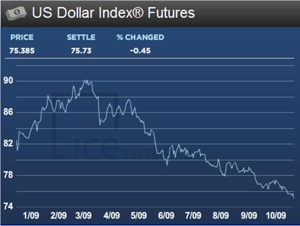 Le dollar, comme nous l’indique l’indice USDX coté sur l’ICE à Londres a perdu depuis le mois de Mars 17% de sa valeur (FIG.II) contre un panier de grandes monnaies (Euro, Livre, Yen, Franc Suisse, Couronne Suédoise, etc.). En parallèle les cours du pétrole sont passés de 40 $/baril à 80$/baril (FIG. IV).