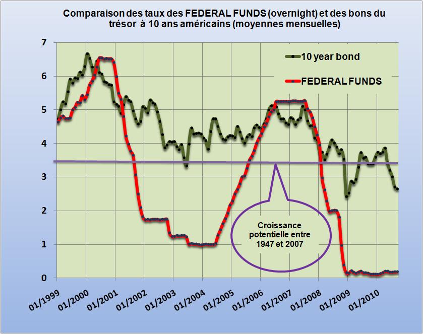Le maintien pendant trois ans (entre 2002 et 2005) d’une politique laxiste des taux américains administrés (<2%) par le « genious » Greenspan (FIG.II) ont conduit la flambée des cours des commodities puis à la crise financière et économique de 2008-2009. Bernanke commence sa troisième année d’une même politique, attendons nous aux pires vicissitudes et transitoirement à une remontée des spéculations diverses dont celles sur les commodités comme le cuivre ou le pétrole.