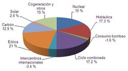 Sous un titre accrocheur du très bon quotidien économique La Tribune intitulé: « L’éolien, première source d’électricité en Espagne » on peut lire au détour de ce papier l’affirmation suivante: « C’est la première fois que cela se produit depuis que l’Espagne a fait le pari des énergies renouvelables, notamment pour limiter sa dépendance vis à vis de l’étranger. Celles-ci comblent à hauteur de 75% les besoins espagnols en énergie, contre une moyenne d’un peu moins de 60% dans l’Union européenne, selon les données officielles. » Interloqué devant ma profonde ignorance et remontant aux données initiales sur Red Electrica de Espana il est possible de lire: « El conjunto de las tecnologías renovables cubrió en marzo el 42,2 % de la demanda de electricidad, por debajo del 48,5% del 2010, debido a que la producción hidráulica del año pasado fue mucho más elevada. » Ce qui doit vouloir dire approximativement que l’ensemble des énergies renouvelables au mois de Mars ont représenté 42,2% de la demande en électricité au lieu des 48,5% en 2010 en raison d’une production hydraulique de l’année précédente qui avait été beaucoup plus élevée.