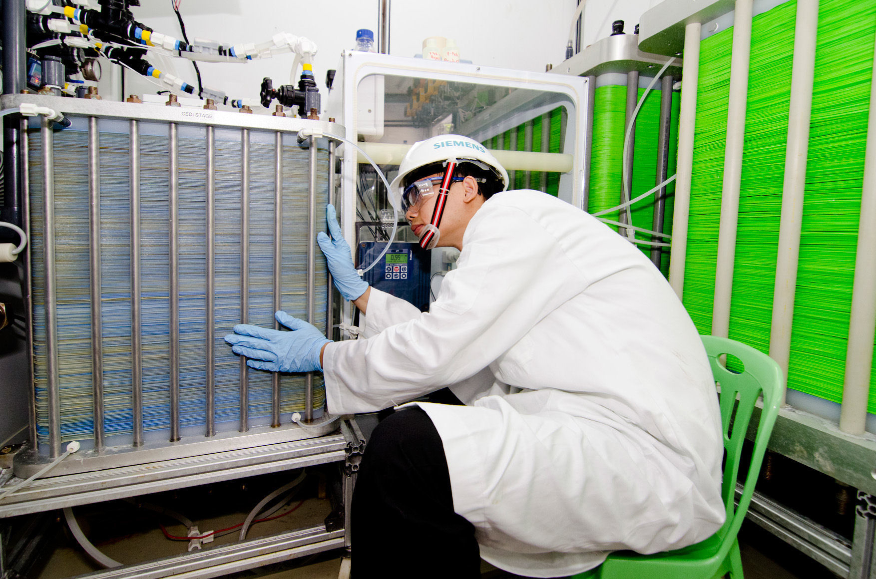 Remarque: Siemens après des tests conduits sur un pilote de dessalement de 50 m3/jour depuis Décembre 2010, annonce vouloir installer une unité pilote industrielle d’électrodialyse en 2013 à Singapour. Cette unité sera équipée de trois unités d’électrodialyse en série permettant de traiter des eaux très salées et de trois unités d’électrodéionisation en parallèles.