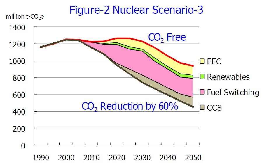 Avec un tel scénario le Japon poursuivrait la réduction de ses émissions de CO2 (FIG.II), mais ce ne serait pas gratuit pour le consommateur.