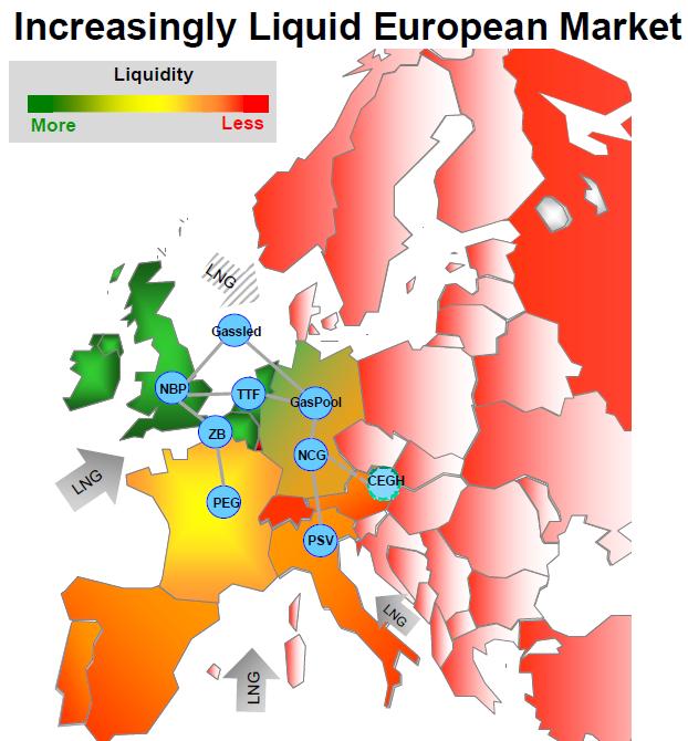 L’Europe du gaz naturel, avec des consommations croissantes, des productions locales décroissantes et en retard dans l’exploitation de ses réserves en gaz non conventionnel, va dépendre de plus en plus des importations en provenance de Russie, de Norvège, d’Afrique du Nord, du Moyen-Orient et d’Afrique. La mise en service au travers de la Mer Baltique, du gazoduc North-Stream qui relie directement les immenses ressources russes au gros client allemand, en phase de dé-nucléarisation de ses centrales, illustre parfaitement cette dépendance croissante. Pour éviter que l’Europe ne perde trop de plumes dans ce balancement des échanges, dans un monde largement approvisionné en gaz naturel, il serait préférable que les diverses sources d’approvisionnements potentielles (gazoduc ou GNL) puissent être mises en concurrence au moyen de contrats flexibles et regroupés à divers acteurs européens. Pour cela il est nécessaire que les infrastructures soient adaptées à cette flexibilisation des approvisionnements.