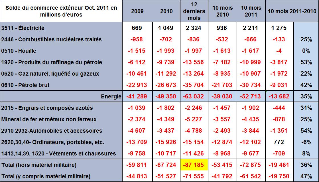 Messieurs les Parlementaires, lisez les statistiques douanières tous les mois! Cela ne pourra pas vous faire de mal. La France n’a pas de pétrole…aurait-elle encore quelques idées?