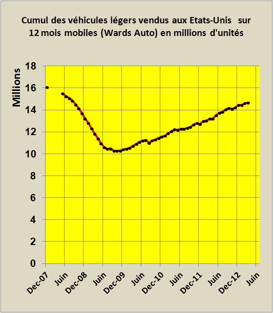 Le marché de la voiture et autres small trucks américains confirme sa remise en forme. Pour s’en persuader il suffit d’examiner mois après mois les ventes cumulées de véhicules sur les douze derniers mois. Bien sûr le marché n’a pas encore retrouvé les ventes annuelles enregistrées à fin 2007 qui avaient atteint les 16 millions d’exemplaires, mais il est bien au-dessus des misérables 10 millions d’unités dénombrées à fin 2009 (FIG.I). A fin Mars 2013 ces ventes cumulées sur 12 mois s’élevaient à plus de 14 millions de caisses selon les données publiées par le site WardsAuto. Pour le mois, les ventes annualisées correspondaient à 15,2 millions d’exemplaires.