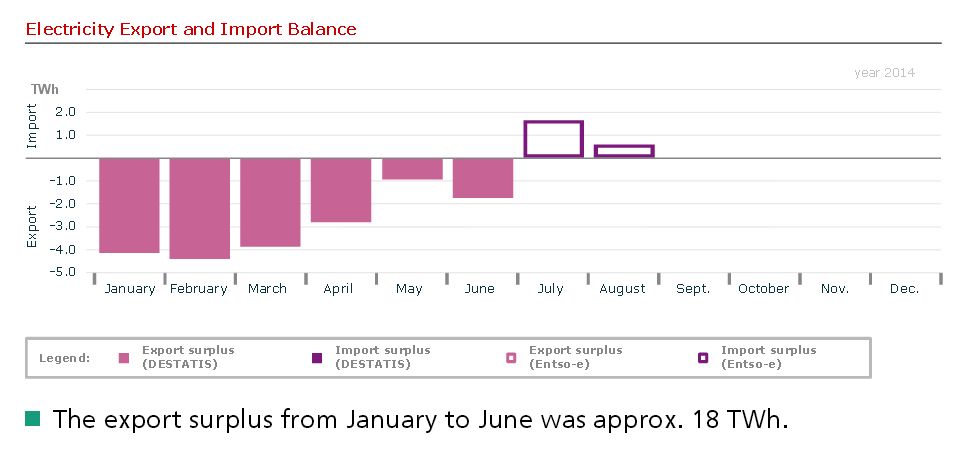 Les faibles productions éoliennes allemandes durant cet été ont été secourues par des importations de puissance électrique en provenance des pays voisins.