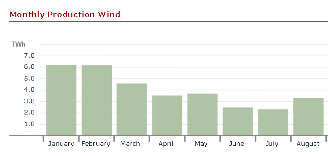 Les productions du mois d’Août avec 3,4 TWh affichent un facteur de charge sur la base de la même puissance installée de 13%. ce qui conduit à un facteur de charge moyen de 11% pour les deux mois cumulés de Juillet et Août.
