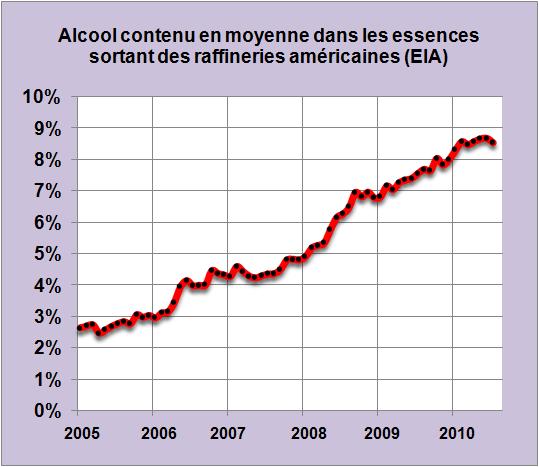 – la teneur en éthanol pour les carburants "oxygénés" est encore limité à 10% (mélange E10) et la profession attend avec impatience la fin des essais qui activeront le feu vert de l'Administration américaine pour passer au E15 à 15% d'éthanol. La date prévue pour cette modification est encore incertaine, mais attendue en 2010 ou début 2011.