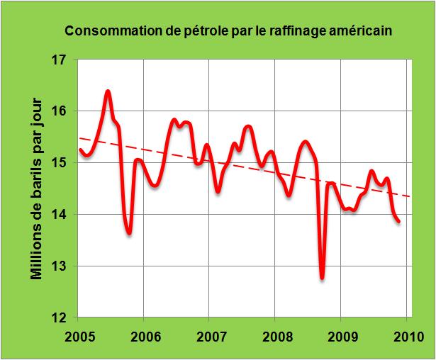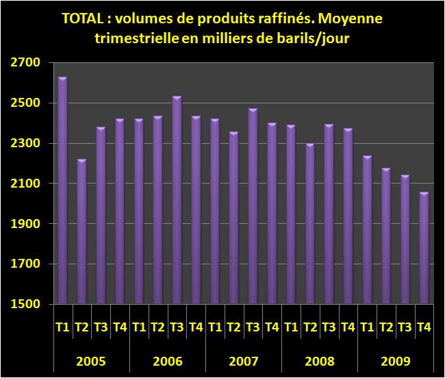 Un autre phénomène à plus long terme est à anticiper, c'est le départ du raffinage et donc de la pétrochimie d'Europe. Plusieurs raisons fondamentales militent pour la réalisation d'un tel évènement. Il y a tout d'abord la volonté des pays producteurs de pétrole et de gaz de s'intégrer vers l'aval afin de mieux valoriser leurs ressources. La Russie le déclare haut et fort, l'Arabie Saoudite est en train de construire d'immenses raffineries, le Qatar va de plus en plus produire de carburants par divers procédés gas-to-liquid. L'autre raison réside tout simplement dans la politique écologique de l'Europe qui a déjà déclenché du "carbon leakage" de ses industries par la baisse rapide des consommations de carburants qui va s'amplifier sous l'effet des prix et des taxes carbones en places ou en cours d'élaboration. Une zone qui voit ses consommations décroître et ses taxes augmenter ne peut pas conserver une telle activité sur ses territoires. Les salariés des raffineries de Total l'ont bien compris.