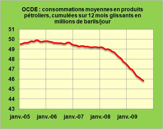 Le scénario le plus probable est donc une consommation stagnante de pétrole d'ici à 2025 ou 2030 autour des 85 millions de barils/jour, la croissance des consommations de pétrole des pays en développement étant compensée par la décroissance de celles des pays OCDE. Puis jusqu'en 2050 les consommations de pétrole sous la contrainte climatique aborderont une phase de décroissance rapide. Un tel scénario où finalement, après 2050, les ressources non conventionnelles représenteraient au moins la moitié des consommations totales qui se situeraient autour de 40 à 50 millions de barils/an, conduirait à une satisfaction des besoins en ressources énergétiques liquides conventionnelles largement au-delà de la fin de ce siècle.