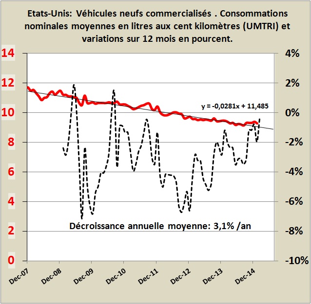 Entre 1959 et 2014 la teneur moyenne annuelle en CO2 de l’atmosphère mesurée en Polynésie serait passée selon le NOAA de 316 ppm à 399 ppm soit un accroissement dans l’azur de 645 milliards de tonnes de CO2 en 55 ans. Ceci conduit à un accroissement moyen de 11,7 milliards de tonnes par an (ou 1,5 ppm), ce qui semble compatible avec les rejets anthropiques de CO2 durant la période et l’absorption globale de CO2 par effet de surface. Aujourd’hui cet accroissement annuel moyen serait de l’ordre de 2,2 ppm (FIG.) ce qui correspond à un accroissement de 17 milliards de tonnes de CO2 dans l’azur pour des rejets annuels industriels et agricoles supérieurs à 40 milliards de tonnes.