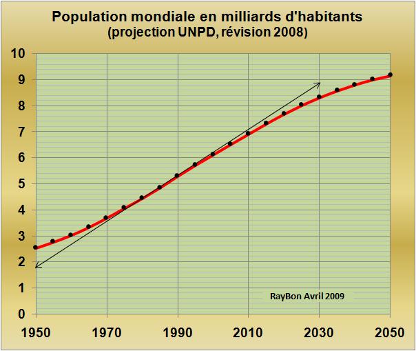 Il suffit de rappeler que les 1,2 milliards d'habitants des pays de l'OCDE, en 2008, ont consommé 55% du pétrole mondial malgré la crise. On en déduit que les 5,6 milliards d'habitants NON OCDE ont consommé 45% du pétrole mondial. Un calcul simple permet de remarquer qu'un individu des pays OCDE a brûlé ou transformé en 2008 en moyenne 14,5 barils de pétrole et que son cousin NON OCDE n'en a utilisé que 2,5 soit un rapport de 5,8 entre les deux. On le voit, un bilan de population brut ne suffit pas, il faut discriminer les variations de population entre les pays riches ou qui le deviennent et celles des pays en voie de développement, parfois bien lent.