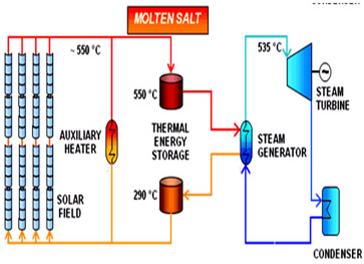 Siemens annonce qu’il va monter un unité de test au Portugal, équipée de ce genre d’équipement et qu’il compte tester durant une période de plus de trois ans, avec pour objectif de qualifier divers sels calo-porteurs à bas point de fusion, ceci afin d’éviter tout phénomène de cristallisation à basse température dans la boucle de 300 mètres de long. Bien sûr tous ces travaux sont sponsorisés par les instances administratives germaniques.