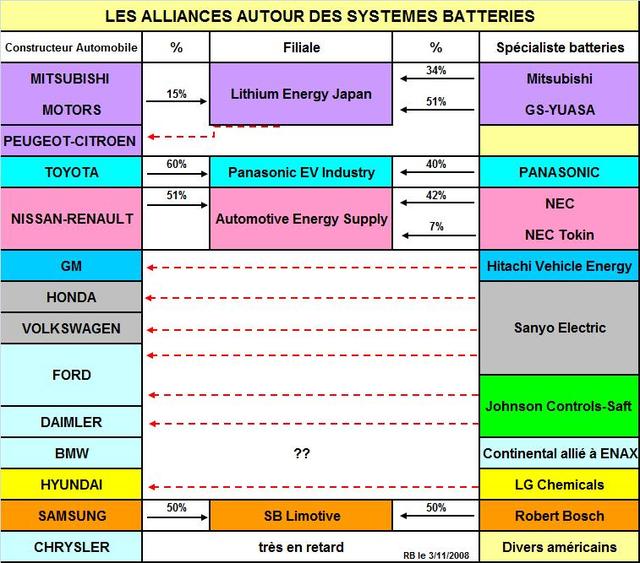 Un examen des autres alliances possibles montre que Volkswagen pourrait s’allier, à côté de Honda, à la partie Sanyo de Panasonic, Peugeot a choisi de s’allier avec le Groupe Mitsubishi, les constructeurs américains pourraient se retrouver autour de l’alliance GM-Hitachi Vehicle Energy. Le panorama serait alors éclairci. Fiat et les Suédois rejoindraient des groupes plus importants. Seul le sort de BMW ne semble pas évident.