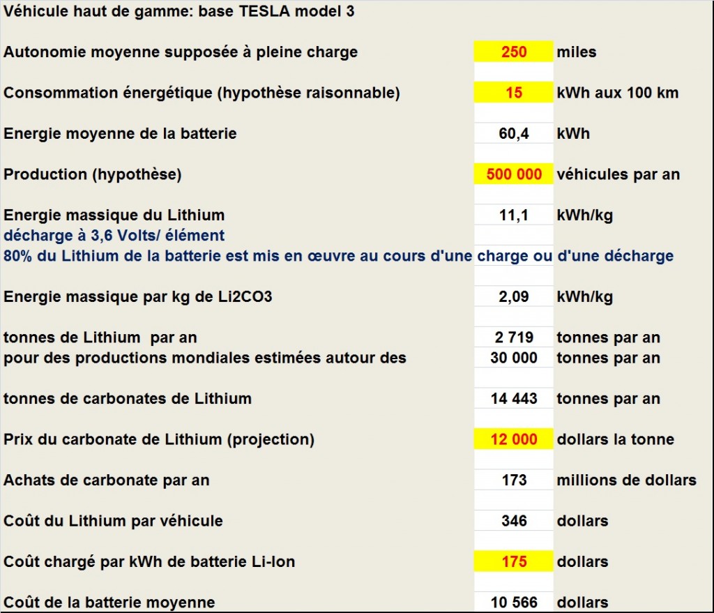 Ce calcul est résumé dans le Tableau ci-après (les valeurs surlignées concernent les paramètres indépendants que j’ai choisis) :