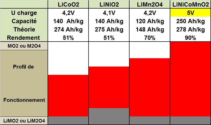 Remarque importante: rappelons pour les écrivains des nombreux blogs et autres gazettes qui recopient stupidement les Fables sur la pénurie de lithium, conséquence du développement des véhicules électriques, qu'une tonne de lithium utilisée dans une batterie dans laquelle 50% de ce lithium seraient électrochimiquement inactifs (irréversible qui varie, à ce jour, de 30 à 50% selon le type de sel de lithium choisi et la tension de charge et part présente dans l'électrolyte), permet, pour une tension moyenne décharge de 3,1V, de stocker: