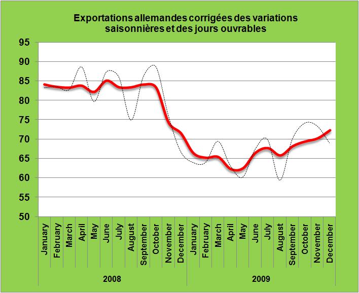Sans être un grand spécialiste de la chose économique et en prenant un peu de recul il est aisé de constater que l'économie allemande a fait un plongeon de six points environ au cours de l'hiver 2008-2009 et qu'elle éprouve beaucoup de mal à s'en remettre.