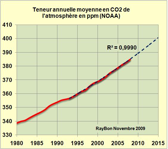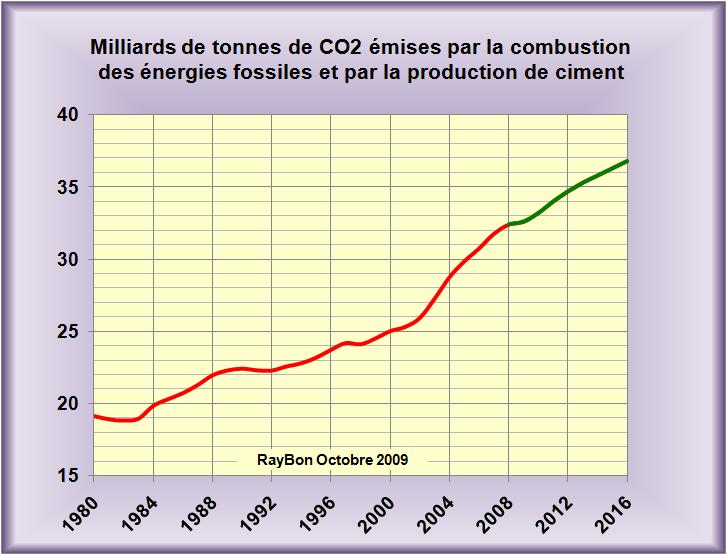 8 – L'inexorable croissance quadratique des émissions de CO2 dans le monde, liées à la combustion du charbon dans les centrales chinoises ou indiennes ne caractérisera pas que l'année 2009. En effet, elle risque de s'étendre sur une large partie du 21ème siècle.