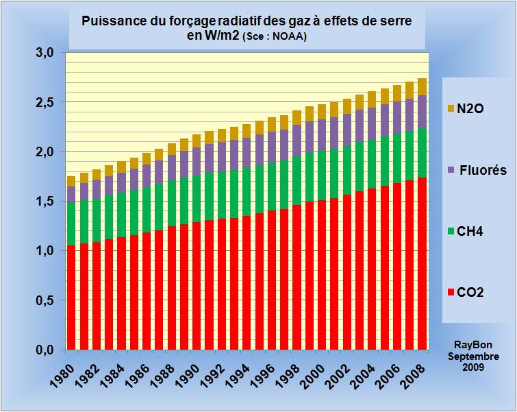 Il apparaît donc que le réchauffement climatique observé depuis les trente dernières années est dû à la fois au forçage climatique relié à la croissance de la teneur des GHG mais aussi à des maximum d'irradiance solaire totale (TSI) particulièrement intenses durant les dernières décennies (FIG.III).
