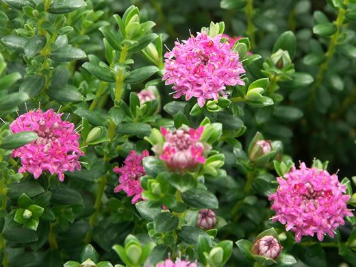 D’origine australienne, le pimelea ferruginea, est un joli petit arbuste compact, au feuillage vert brillant, qui peut nous rappeler, le buis ou même l’hébé;