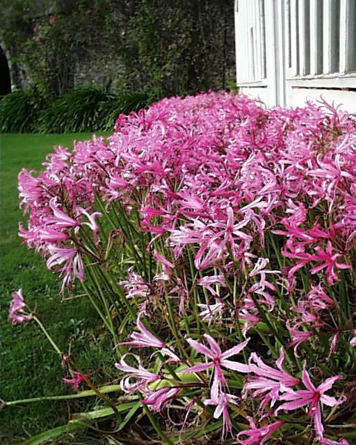 Appelée aussi « lis araignée », la nérine bowdenii (photo) est rustique sous tous les climats contrairement à d’autres nérines plus fragiles. Sa floraison rose vif dure environ trois semaines et s’étale de septembre à novembre. Des fleurs « de lis » à pétales étroits et ondulés apparaissent avant les feuilles sur des hampes de 40 à 60 cm.
