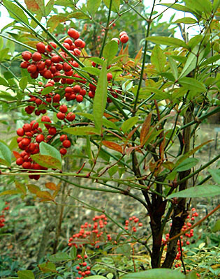 Le nandina domestica, petit arbuste persistant au port dressé évoquant le bambou a l’allure trés japonaise que lui confèrent ses lointaines origines.