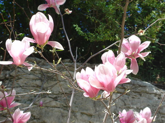 En ce moment, quelques arbustes fleurissent alors que les feuilles ne sont pas encore là, c’est le cas des forsythias, des cognassiers du japon, des corêtes ..mais il est un arbre magnifique entre tous devant lequel je suis tombée en arrêt l’autre jour dans un parc, c’est le magnolia soulangeana.