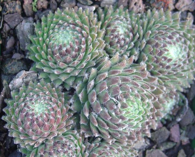 On dirait des petits choux serrés les uns contre les autres. Les joubarbes recouvrent murets et rocailles caillouteuses sans difficulté et pour la plupart, fleurissent de juin à juillet. On les trouve dans presque tous les jardins où elles meublent le moindre recoin.