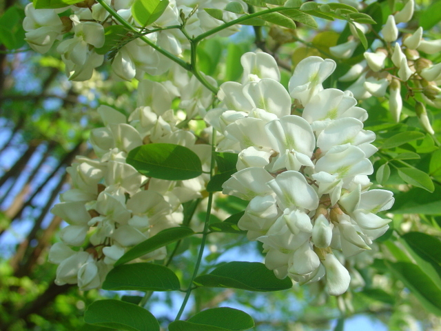 Acacia2 On l’appelle communément « acacia » mais c’est une erreur car c’est un robinier, c’est pour cela qu’on dit que c’est un faux acacia. Tout comme le vrai acacia (mimosa) c’est un membre de la famille des fabacées. Il a de belles feuilles composées et une superbe floraison d’un blanc pur. Ses branches portent des épines acérées, faites attention quand vous maniez le sécateur.