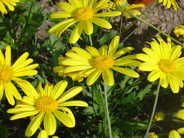 On dirait des marguerites et nombreux sont ceux qui les confondent. Les euryops sont des vivaces arbustives qui atteignent 1m de haut et parfois même un peu plus si on ne les taille pas.