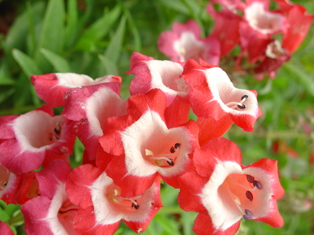 Les penstemons peu connus chez nous sont pourtant des plantes interessantes car leur floraison est longue et abondante. Ils se déclinent en variétés naines utilisées en rocailles ou plus hautes (80cm) que l’on garde pour les massifs où ils font de belles touffes bien vigoureuses.