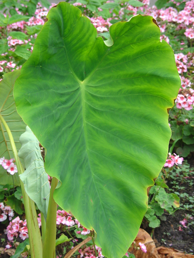 Ses feuilles sont impressionnantes par leur forme et leur taille immense qui leur a valu le surnom d’oreille d’éléphant.