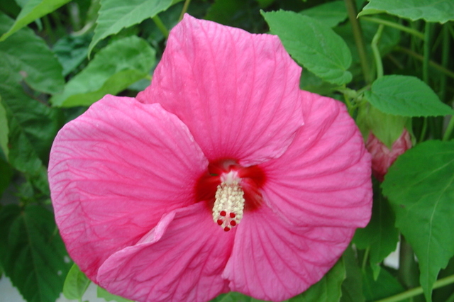 Feuillage caduc, fleurs blanches, roses ou rouge qui se succèdent jusqu’en septembre et même mi-octobre, cette ketmie des marais forme de belles touffes qui reviennent chaque année. C’est en fait un hibiscus qui peut être cultivé en pleine terre et que vous trouverez dans le commerce sous le nom d’hibiscus moscheutos.
