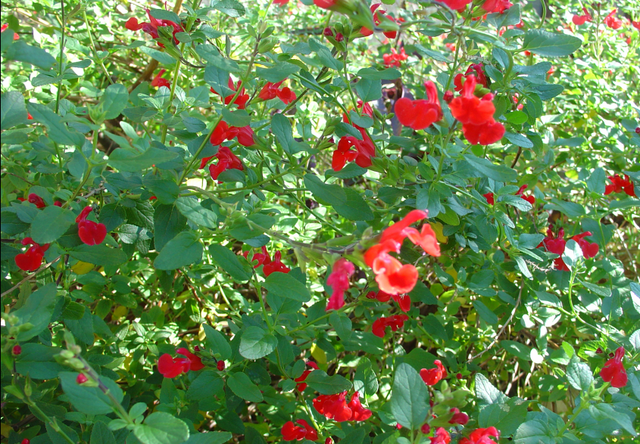 Je ne sais pas chez vous ce qu’elle fait en ce moment mais ici chez moi, dans le sud la sauge microphylla est en pleine floraison et le restera encore un moment. Cette plante ne me donne que des satisfaction, j’aime ses multiples petites fleurs rouges magenta regroupées en épis, j’apprécie son feuillage toujours vert et odorant et surtout elle assure le décor à elle toute seule pendant des mois, même quand toutes les autres ont déclaré forfait à cause du froid!