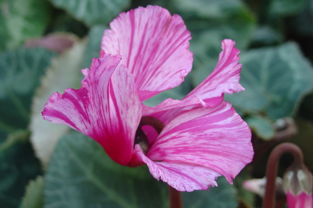 Avez-vous vu ces pétales en forme de frou-frou, ceux qui semblent frisés, ceux qui ont un liseré blanc sur fond rose? J’ai trouvé les cyclamens frangés particulièrement beau et je suis tombée en admiration devant les variétés aux fleurs flammées mêlant deux tons, comme si des coups de pinceaux avaient joué sur les pétales.