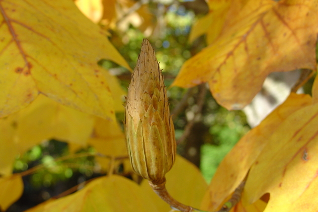 En automne le tulipier de Virginie se couvre d’or puis son feuillage devient brun avant de disparaitre, mais restent sur les branches les fruits étonnants de cet arbre si altier. Il est originaire d’Amérique et a été introduit en France au XVIII ième siècle, depuis il a été adopté par de nombreuses municipalités pour agrémenter leurs parcs et jardins publics.