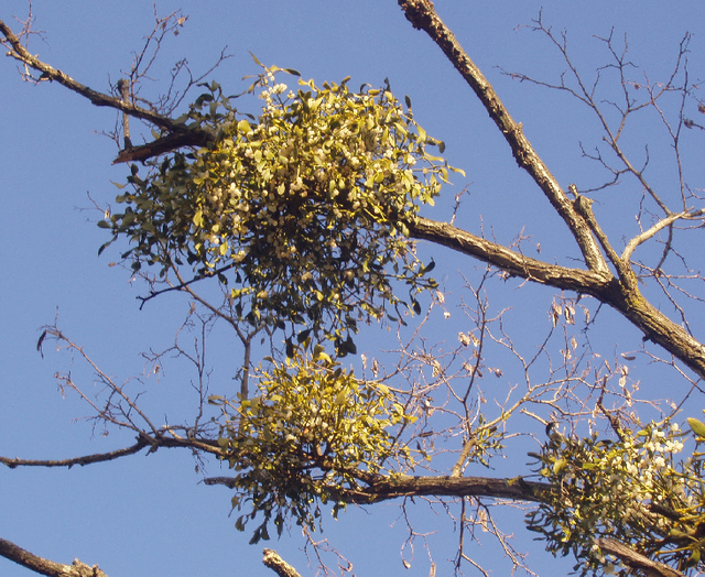 Le gui est une plante parasite, il épuise l’arbre qu’il colonise, pommiers, poiriers, frênes, saules, ormes, hêtres sont ces hôtes de prédilection et les fruitiers sont particulièrement vulnérable à sa présence.