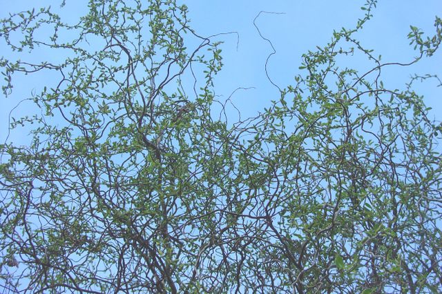 Ce saule tortuosa émet des chatons de couleur jaune-vert au printemps et son feuillage naissant est d’un vert trés doux; voilà un arbre qui allie allure et légèreté.