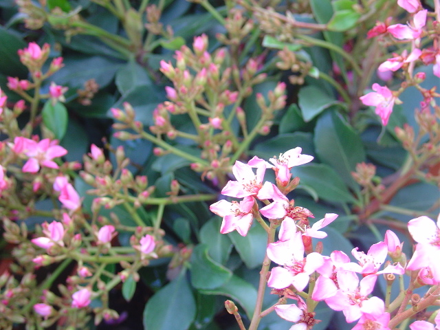 Un nom que vous ne connaissez peut-être pas et une plante que vous n’avez peut-être pas vue non plus, il s’agit du raphiolepis. Cet arbuste méditerranéen mériterait qu’on s’intéresse davantage à lui car il est décoratif toute l’année. Feuillage coriace, bien vert et persistant, floraison blanche ou d’un rose trés doux suivie d’une fructification qui prolonge l’attrait de l’arbuste, oui, vraiment dommage qu’on ne le voit pas plus souvent!