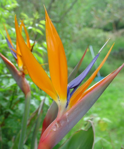 Le strelitzia que l’on appelle oiseau de paradis à cause de la forme de ses fleurs n’est pas difficile à cultiver en pot mais il faut lui éviter le gel en hiver tout en le laissant dans un lieu clair et frais. Les boutons floraux sont longs à éclore mais une fois épanouie, la fleur dure de longues semaines : c’est une des raisons qui fait qu’outre sa beauté, elle est trés utilisée en bouquet par les fleuristes.