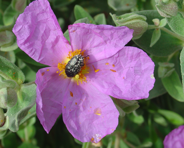 Il me semble qu’il y en a de plus en plus dans le jardin, peut-être que je me fais des idées mais en tous cas il suffit d’aller voir les roses, les cistes, les gaillardes ou autres fleurs bien colorées pour en trouver quelques-uns. Rarement seul dans le corole, ils sont souvent plusieurs à se partager l’emplacement qui détient le précieux nectar.