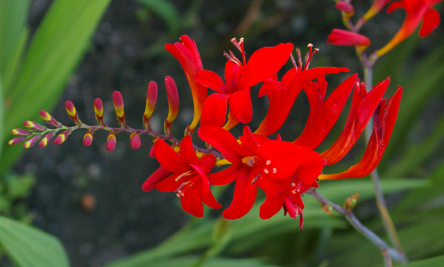La floraison orange, jaune ou rouge flamboyant fait des ilots trés colorés dans les massifs et comme les montbretias ne sont pas exigeants, on peut les installer au jardin en étant assuré d’avoir de jolies fleurs pendant de nombreuses années. Les touffes s’étoffent au fil des ans et ainsi regroupés les crocosmias sont vraiment superbes.