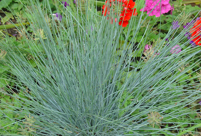 Plantée dans un massif au milieu de verveines bien colorée, cette fétuque ne passe pas inaperçue. Ses longues et fines feuilles sont d’un bleu acierqui se marie à merveille avec les teintes vives de ces fleurs qui se renouvellent sans cesse tout l’été.