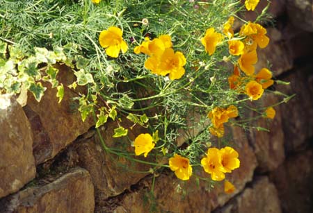 Cependant, il existe d’autres pavots, dont le pavot de californie, plus connu sous le nom imprononçable d’eschscholtzia (orthographe pas facile non plus), qui lui, nous offre un kaléidoscope de couleurs, dans un seul petit sachet de graines en mélange; toutes les teintes à dominante orangée, avec du rouge, du rose, et surtout du jaune, dominent un beau feuillage ciselé, vert amande.