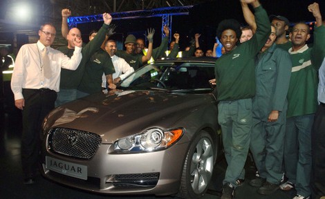The picture you see here might become the symbol of a new era for Jaguar. By rolling off the first XF model yesterday at the Castle Bromwich factory, Jaguar is sending its heritage to the history books and is moving forward a troubled future. The XF is a 4.2 litre V8 SV8 model in a Vapour Grey paint. It will be given to the Jaguar Daimler Heritage Trust collection.