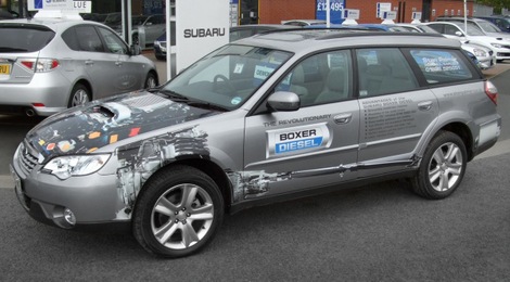 When you’re a Subaru dealer, selling the first diesel engine of the carmaker represents quite a challenge when customers only think of the Impreza when they hear ‘Subaru’. An inventive Subaru dealer has devised a see-through car to promote the new Boxer Diesel engine.