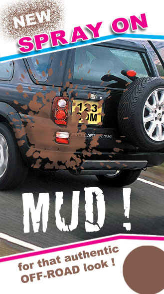 Tired of nasty remarks on your Freelander that has never left London? There’s a solution for you: Sprayonmud. This a bottle filled with mud collected in the centre of England. Just spray it on your car and it’ll look as if you had spent the week-end off-roading in the countryside. Of course, it’s harmless for the paintwork. Anyway, don’t forget your plate numbers must remain visible so don’t use it to fool radars. Eventually, even if your car was delivered late because the factory had been invaded by ecologists, please don’t spray mud on them alleging it’s for the sake of their skin, badly damaged by pollution and nights spent sleeping in trees.