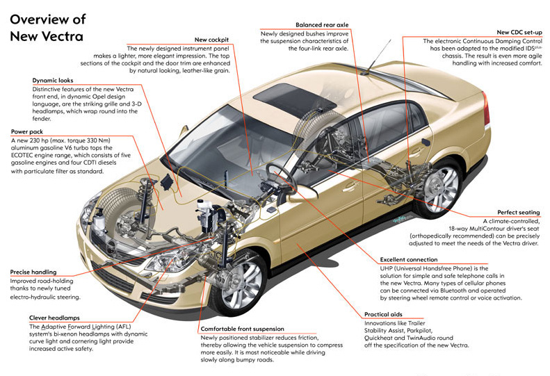 Based on the GM’s new Epsilon 2 platform, the car will not feature the system that appeared on the recently face-lifted Saab 9-3 model. Indeed, it will be equipped with the electronically controlled transmission, which made its debut on the GTC concept car. The four-wheel drive system distributes the power between the front and rear wheels and allows more power to be sent to the rear if any traction loss occurs, especially during acceleration. Associated with a revised active suspension taken from the current model, Vauxhall hopes the car will match the premium brand models such as the Audi S4 or BMW 335i.